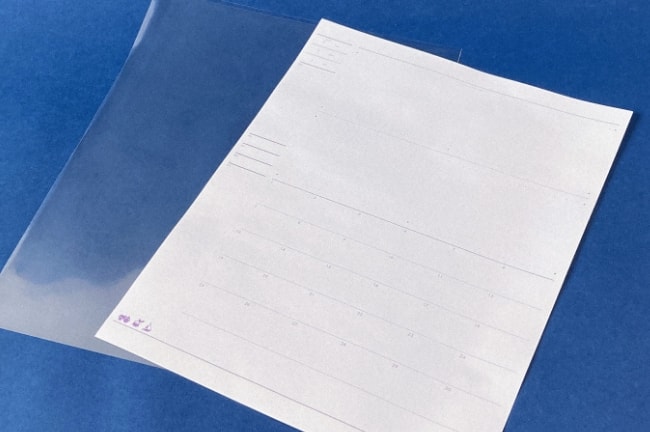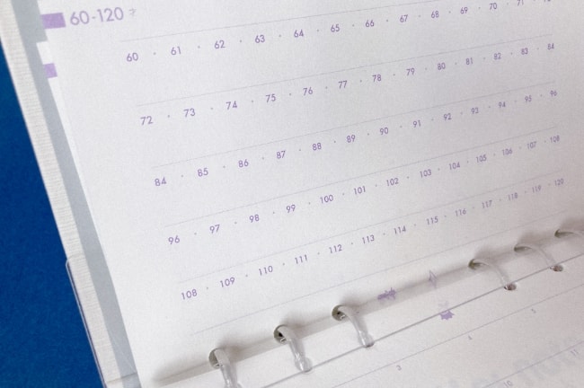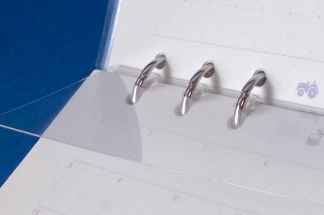 ストリングスキーパーを外し、バインダーを開いてリングを水平線に見立てて、上下のリフィールをリンクさせて記入します。