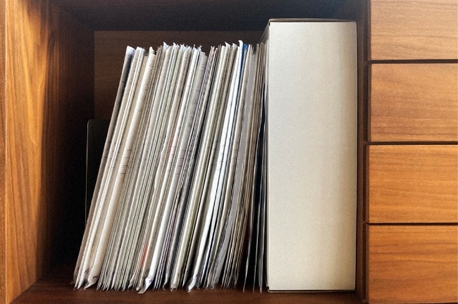 書類に発生した日付と、名前をつけて、あいうえお順で引き文字をつける、