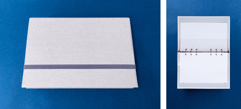リフィールサイズは横170mm 縦105mm・リングサイズは20mm・バインダーの重量は約100g、できる限り軽いバインダーを目指しました。